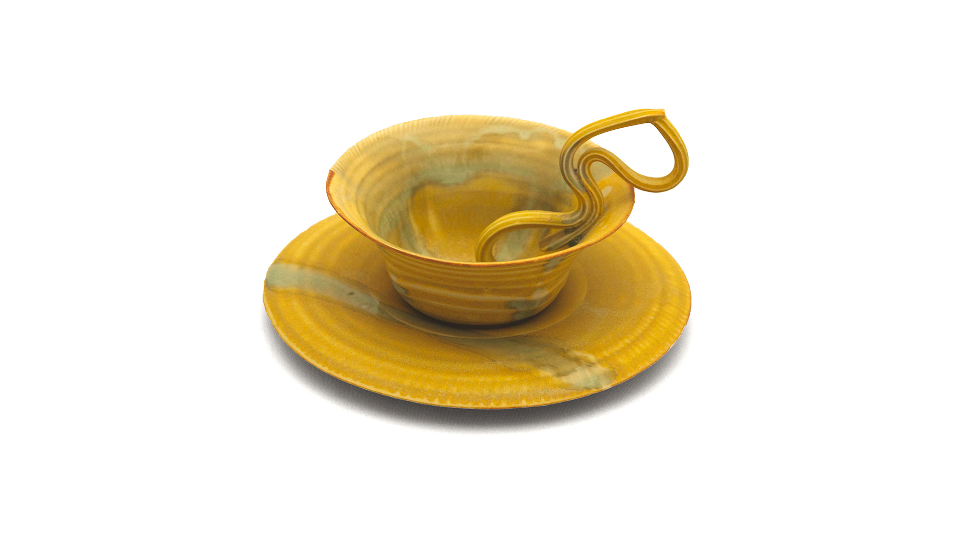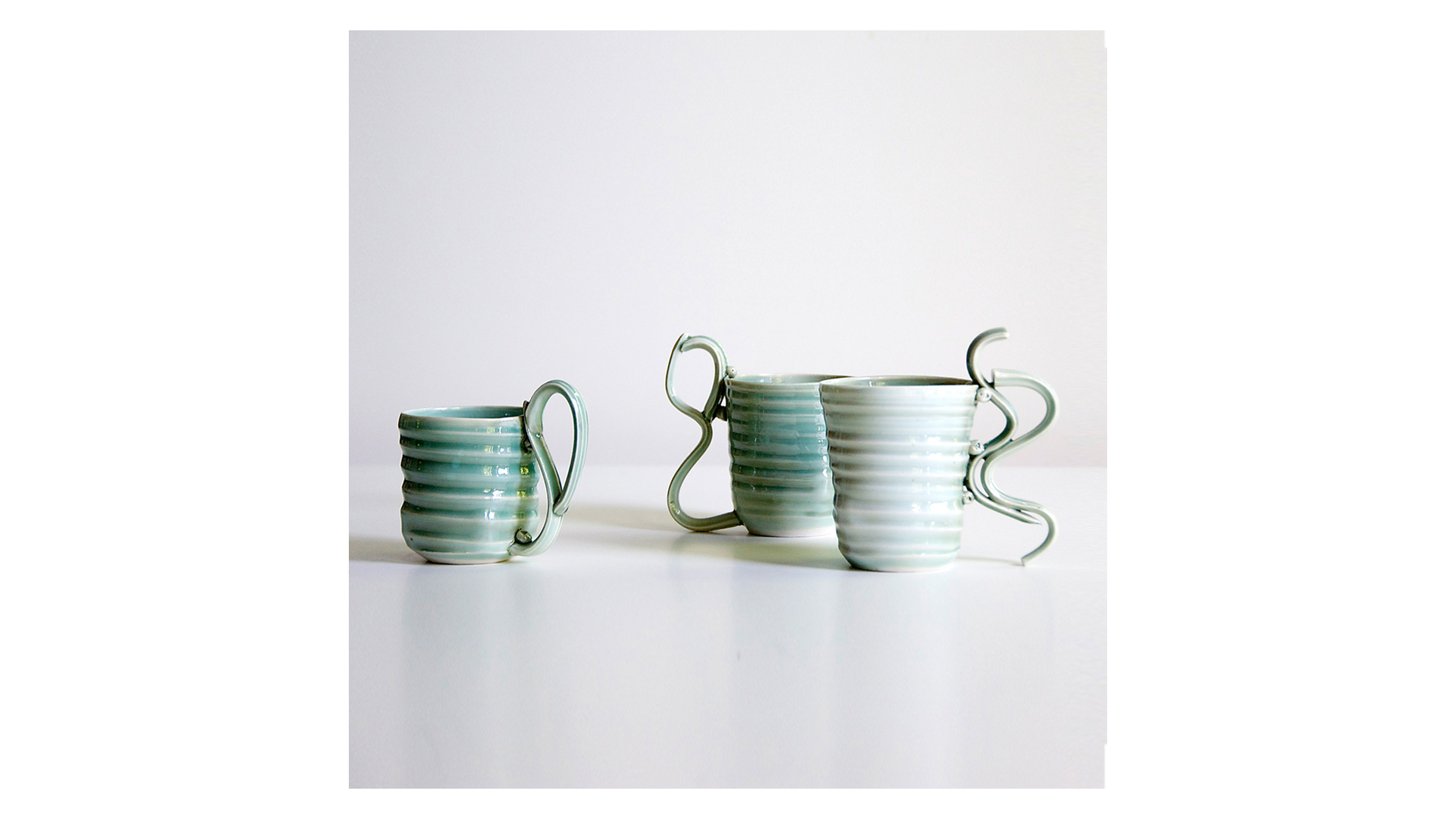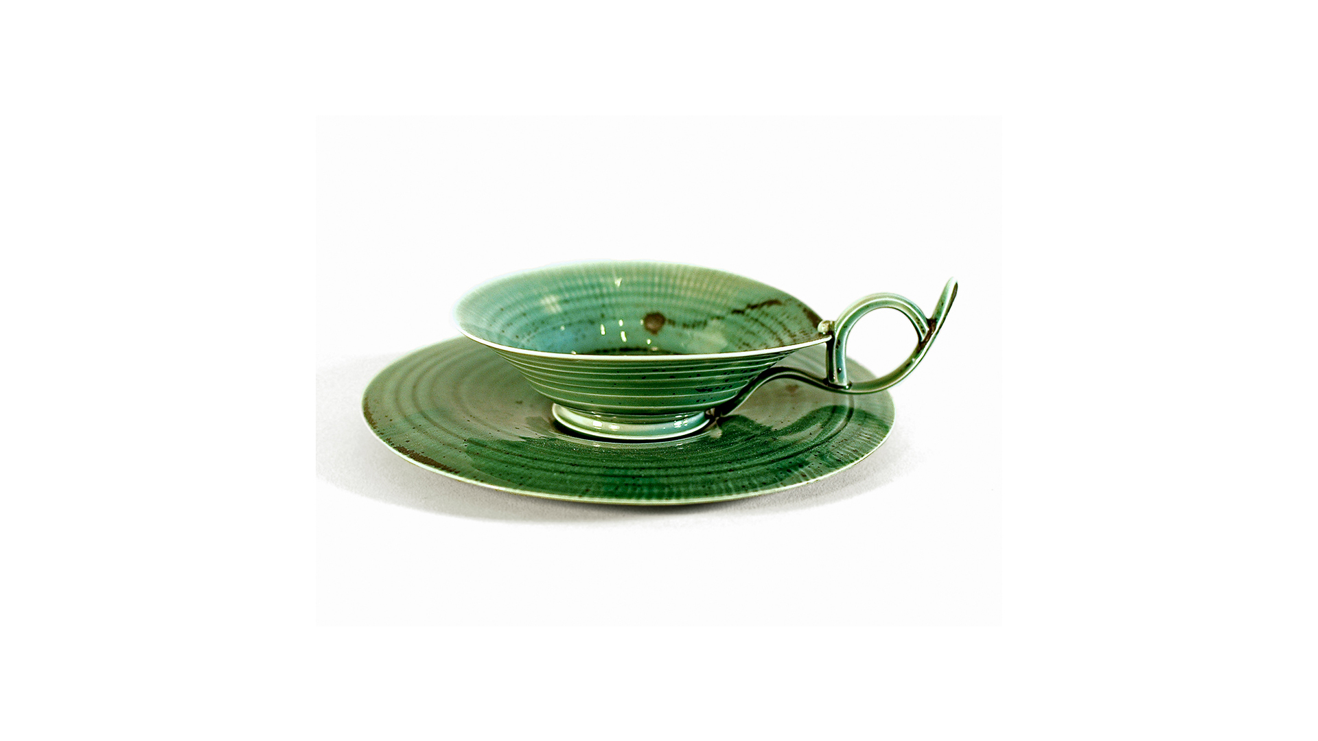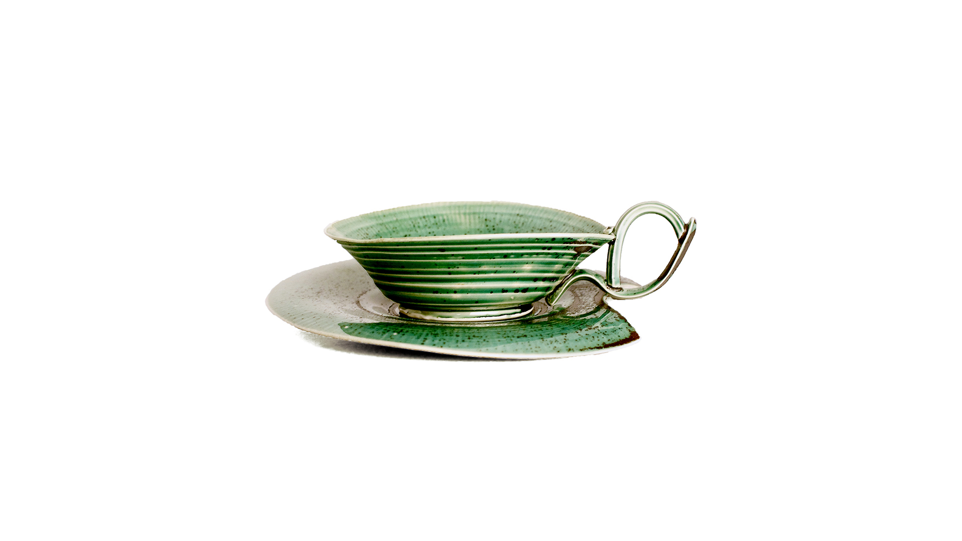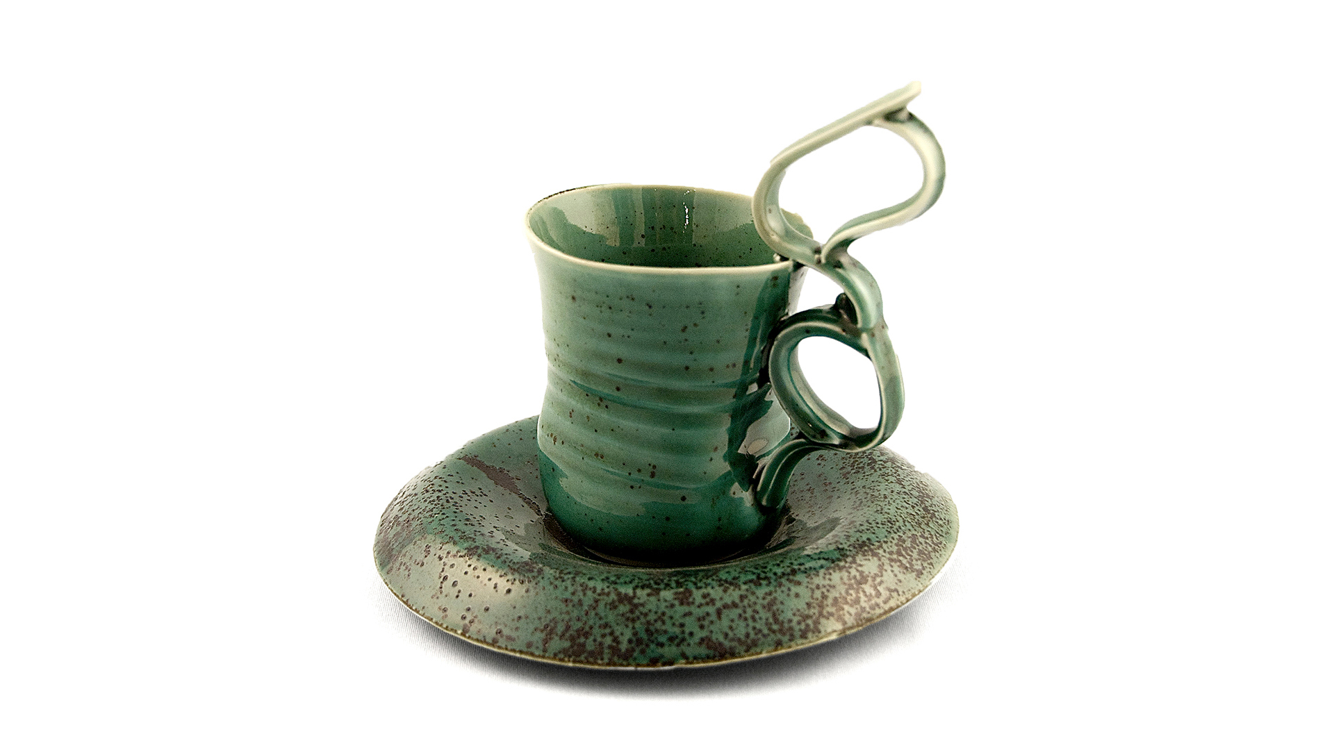 During this period I studied my recently built kerosene kiln and how to achieve successful cone 10 firings. New practices of placing pieces, developing glazes, and discovering application techniques interplayed to become a great memory. My relevancy to not just my own sense of self as maker but to culture in general really played with my ability to be happy. However, following Kayo O’Young’s and Maeno Yoshiki’s guidance, I developed a sense of play and acceptance of my work. Among my favourite glazes was a rich Tenmoku that defied gravity, a metallic green Oribe, and a glaze I called Natsu no Hisui orSummer Jade. I applied my glazes mostly by spraying and varying hydrometric levels in the glaze. It was in 2007 that I received my first commission, as it came to light that my son was on his way. A young couple, for their wedding guests, ordered 300 coffee cups that I placed in simple wooden boxes. This catapulted my bravery as a Canadian maker in Japan.