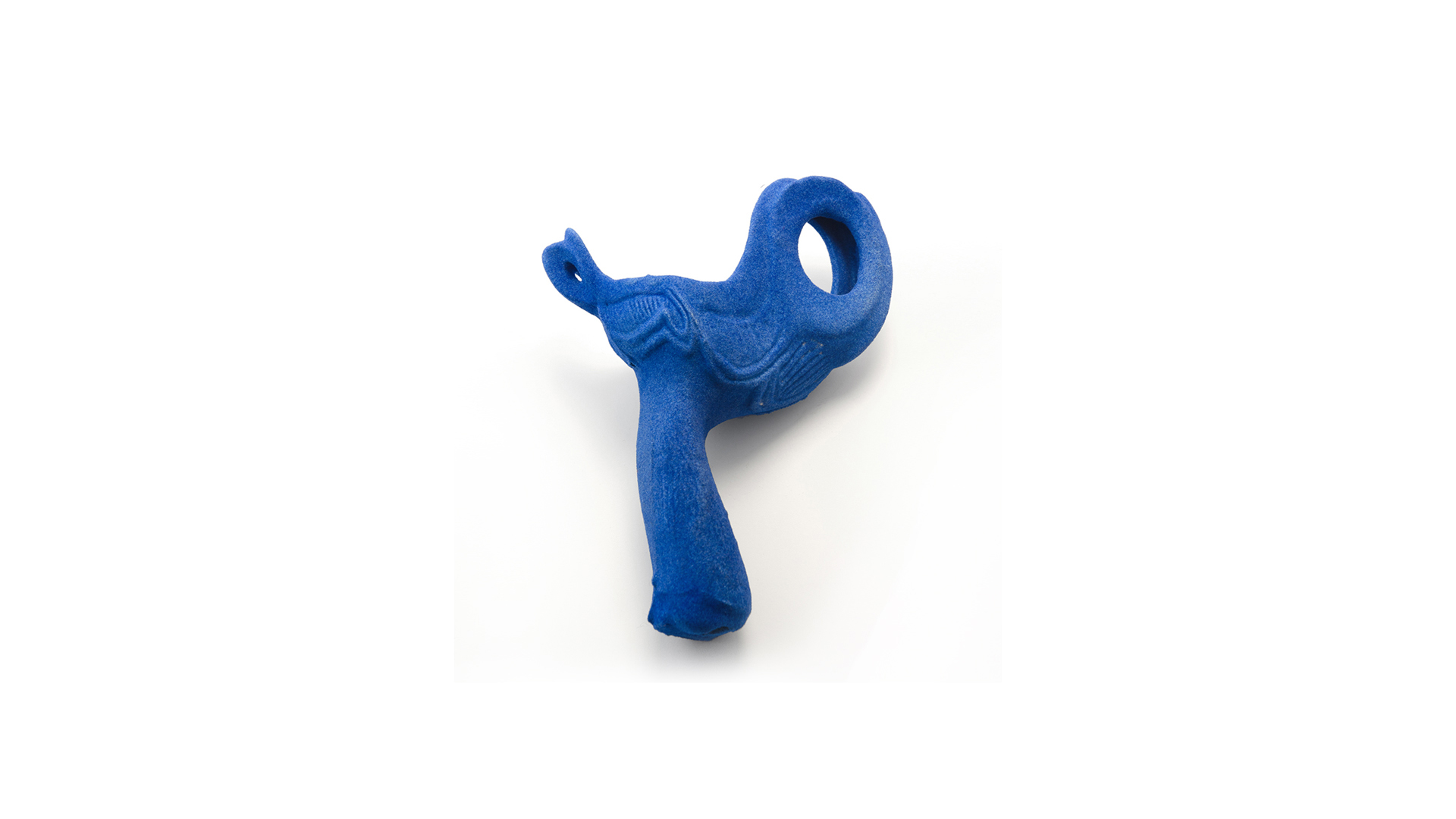 With the assistance of a grant from the Canada Council for the Arts, I have engaged rapid prototyping technologies to research and reflect on process and the relevance of maker as cultural and historical commentator. Developing a relationship with a maker from the Neolithic period provides some obvious challenges which can only be sorted in the ethereal. Thus begins a virtual mentorship, if you will, through CT scanning a Neolithic Jomon artifact, virtually manipulating the data with Zbrush, then 3-D printing, cast moulding and finally slip casting the final piece. The analysis through software programs has provided an abundance of static information from the artifact’s density through to understanding where that Neolithic maker’s fingers pressed the coils together to form the vessel. Why do this? My take on every maker’s development is one not dissimilar to that of a child playing with their favourite toy. The excitement with which the colours, the shapes, and maybe even the taste or scent of this toy excites the senses and thus commences the uncontrollable desire to bite, chew, and drool all over that thing. I see each historical and cultural object as a near sibling to such toys. As human beings we are persistently trying to find a direct relationship with our interests and sometimes, like children, we find ourselves in new territory and mistakes happen. But, we go on, and we learn. A particular Jomon artifact came into my path and my first instinct was to “play”. What has transpired is a culturally and historically significant “Jomon-yaki Squeeze Toy”. This exercise allowed me to see past rapid prototyping as something to fight against but rather embrace. As someone who makes things with his hands, rapid prototyping remains slightly horrific. However, the ability to employ rapid prototyping from scan to sintering or printing should be seen as a great chance to engage these “hyper tools” to their full ability and beyond. Simultaneously, it has allowed me to engage an otherwise inapproachable mentorship with the maker of a Jomon vessel to then provide my take on the functionality and purpose of form.
